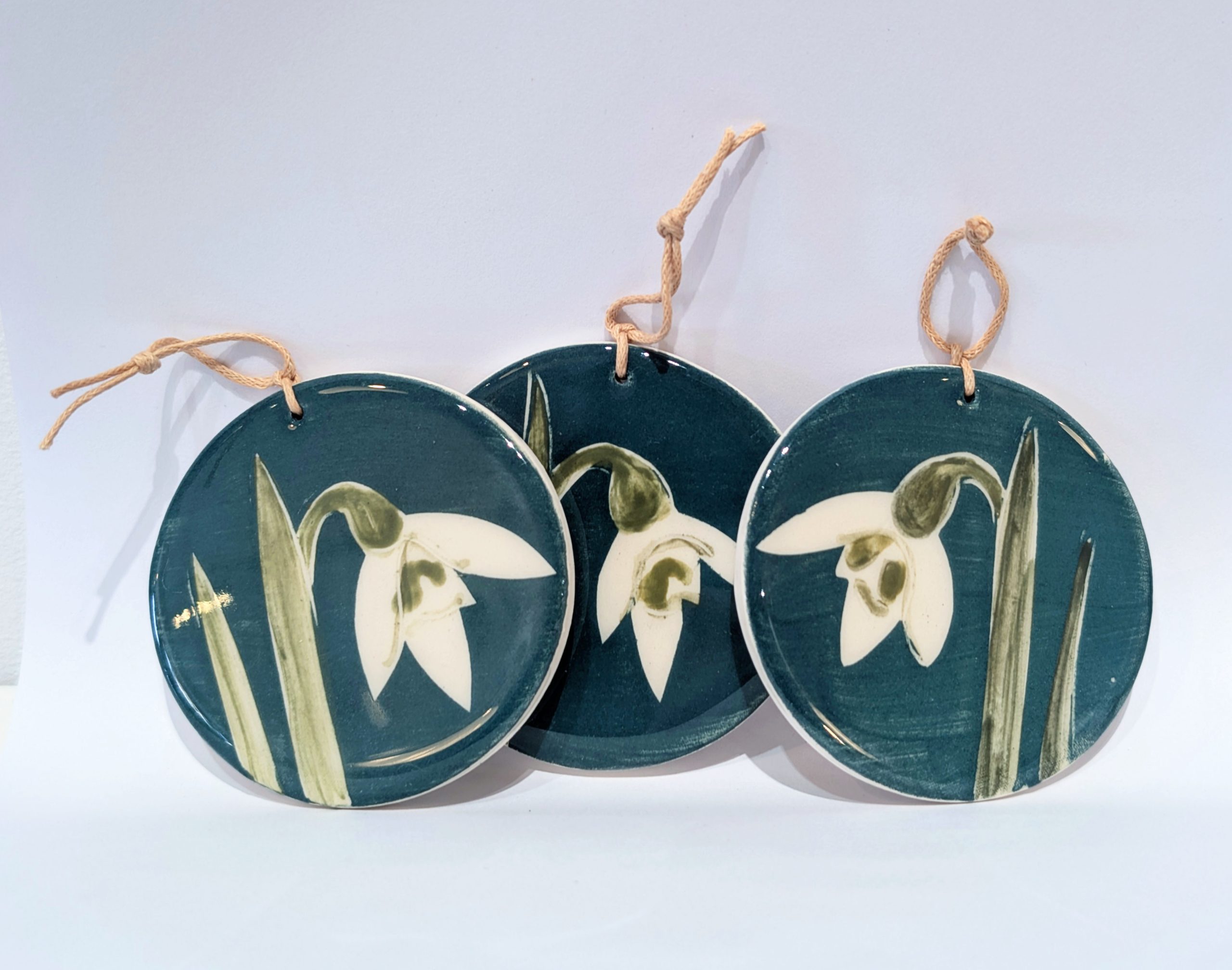 Ceramic Green and White, Snowdrop, Hanging Decoration