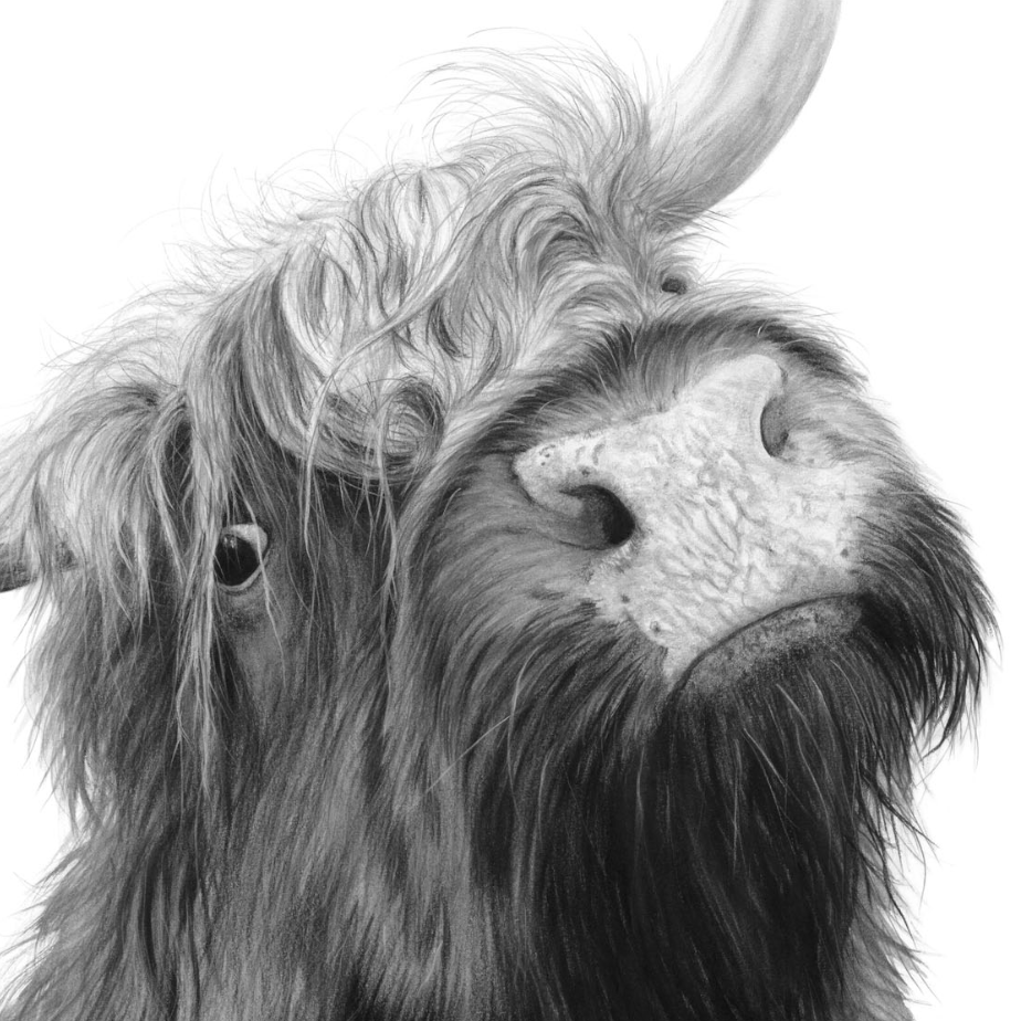 Wonderful square print of ‘Hamish’, a signed limited edition print of a charcoal and wash painting by artist David Pooley. Available in either 12″x12″ or 16″x16″, please choose the print size you require.