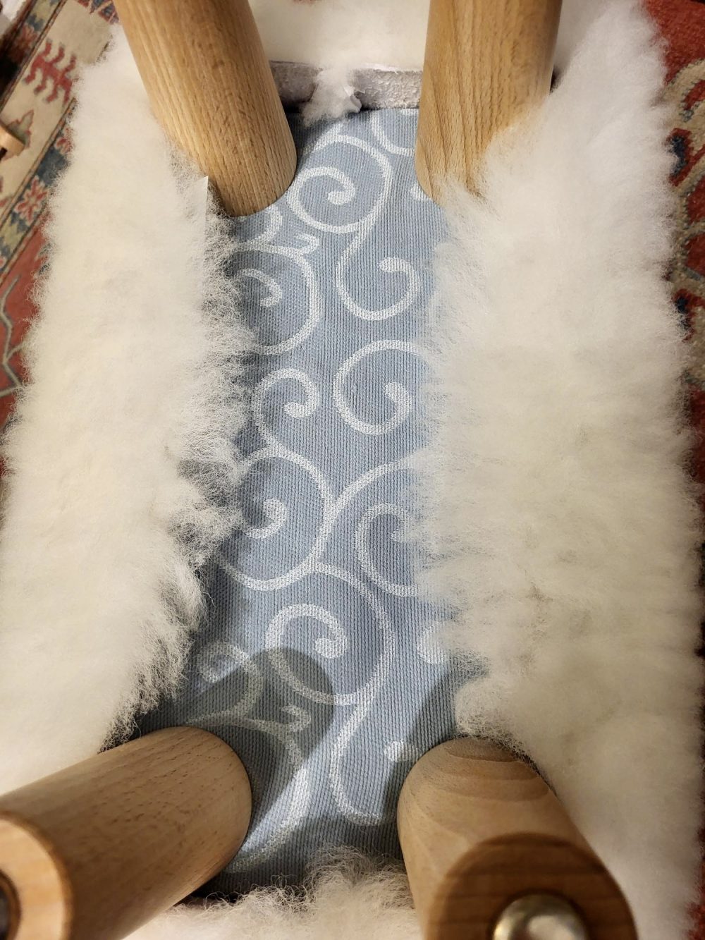 ‘Holly’, Hand Carved Sheep Footstool, White Fleece