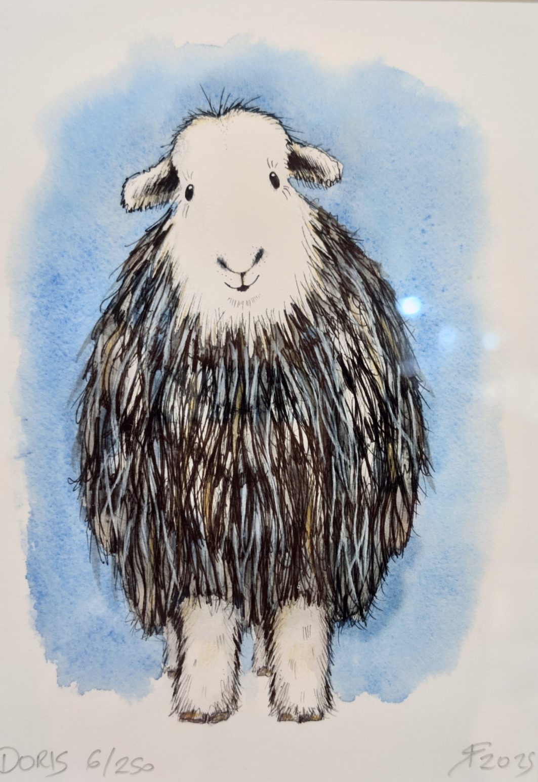 Blue Herdwick Sheep Illustration, Limited Edition Print, Black Frame